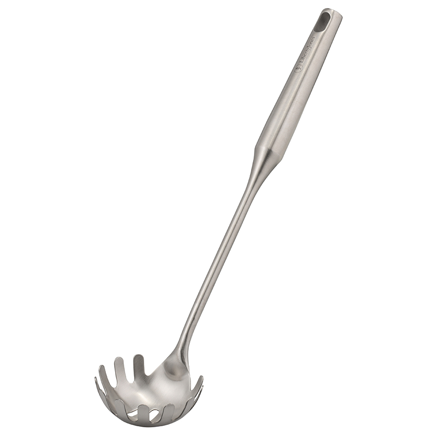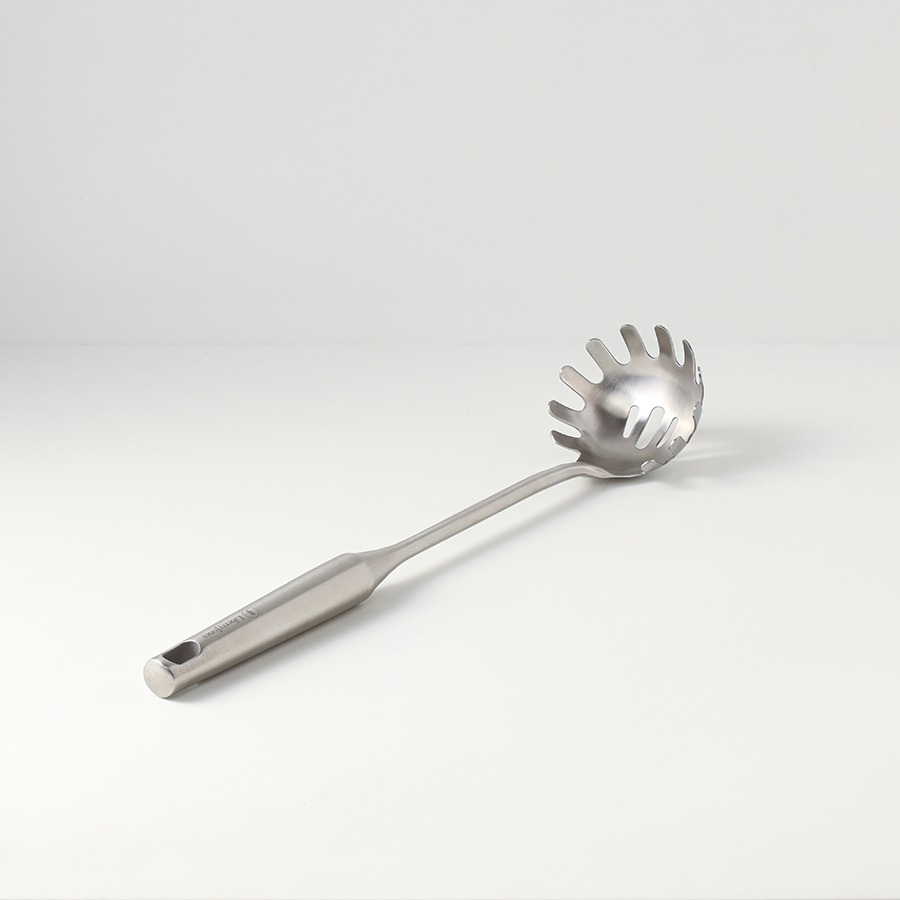 Специальной ложкой Pure легко извлечь готовые спагетти из кастрюли. Зубчики обеспечат удобный захват продукта. Прорези позволят стечь лишней жидкости и сделать подачу блюда более эстетичной.
