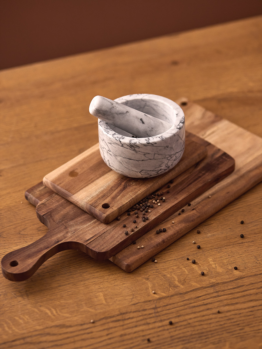 "Мраморная ступка Marm – не просто инструмент для измельчения, а воплощение кулинарного мастерства и изысканного стиля. Это простое приспособление позволяет раскрыть истинный вкус и аромат трав и специй, превращая обыденное приготовление пищи в волшебный ритуал. Вы сами определяете степень помола в зависимости от индивидуальных кулинарных предпочтений и рецептов – от крупной крошки для соусов и маринадов, до тончайшей пудры для десертов и выпечки.